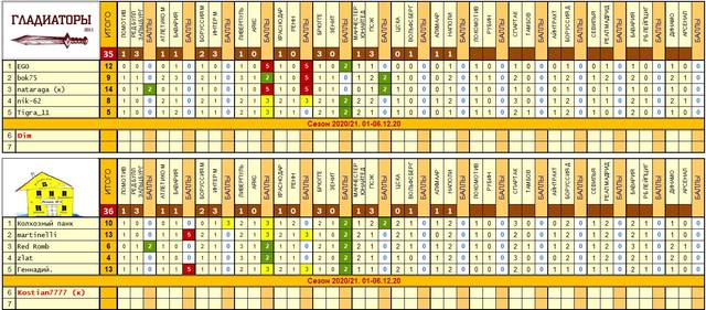 Взял таблицу. ![]() Случайным образом имеем календарь. ![]() Второй круг в обратном порядке. скрытый текстРегламент завтра подрихтую. Ваши предложения, пожелания! Старт с 11-го тура - 20.10.2020 19:55 -------------------- Лучшее - враг хорошего.