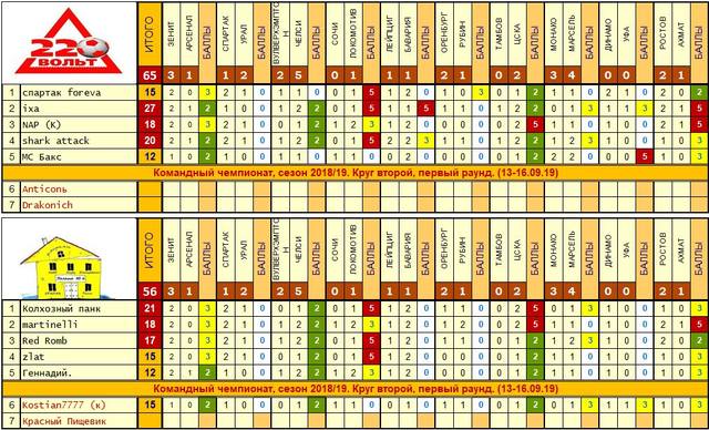 2. 17.09.2019, 22:00 Наполи – Ливерпуль 1-2 3. 17.09.2019, 22:00 Боруссия (Д) – Барселона 2-1 4. 17.09.2019, 22:00 Бенфика – Лейпциг 1-2 5. 18.09.2019, 19:55 Олимпиакос – Тоттенхэм 2-1 6. 18.09.2019, 22:00 ПСЖ – Реал 2-1 7. 18.09.2019, 22:00 Атлетико – Ювентус 1-0 8. 18.09.2019, 22:00 Байер – Локомотив 2-1 9. 19.09.2019, 19:55 Базель – Краснодар 1-2 10. 19.09.2019, 22:00 Лудогорец – ЦСКА 0-1 -------------------- Перемен! Мы ждем перемен!