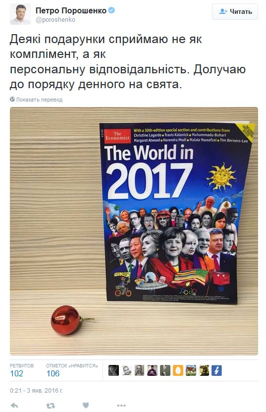 Эпик фейл Порошенко: он похвастался в твиттере тем, что попал на обложку журнала The Economist в числе ведущих мировых лидеров. Но как выяснилось, эта обложка оказалась фальшивой, а на настоящей изображен Путин.