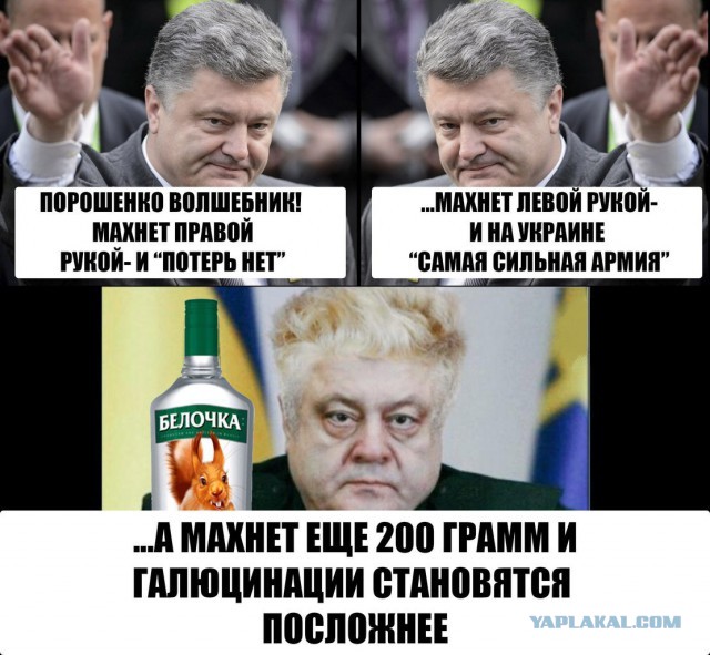 Петя несёт уже который день. В алкоштопор плотно вошёл видимо. «Современные защитники независимости, территориальной целостности и суверенитета украинского государства тоже доказали, и доказывают, что украинская армия, которая создана за последние три года, восстановлена, возрождена, является одной из самых эффективных армий континента», — заявил Порошенко во время рабочей поездки в Сумскую область. Читать далее: http://ukraina.ru/news/20170712/1018902393...Fzen.yandex.com Ну он в Европу и Америку пьяный ездить не может, его с капельницей в кармане там на встречи выводят - зато в Сумах Петя по полной разворачивается )))) Удивительно как еще с початой бутылкой ни разу не вышел выступать на Украине ))))))))))) Видимо помощники нормальные, вовремя отнимают ))) |