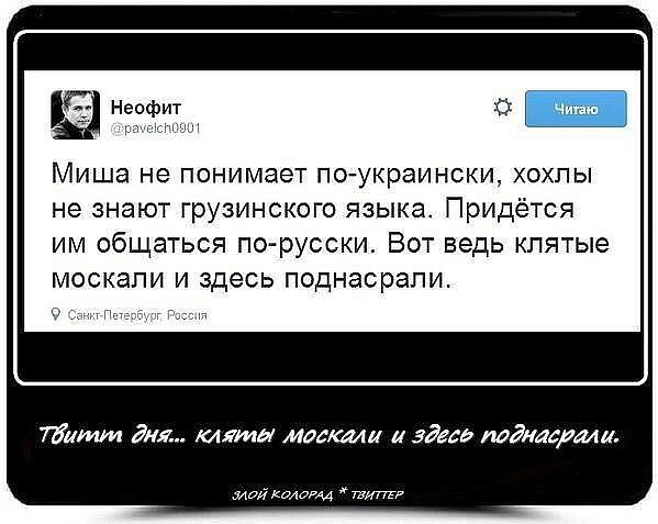 <iframe width="560" height="315" src="https://www.youtube.com/embed/OBZWlWDjklY" frameborder="0" allowfullscreen></iframe> а мишико дерзкий))) "Саакашвили-я украинец! Аваков-я уркаинец тоже!" с этого момента чуть не обоссался)))) Армянин, украинец больше... Он с 1966 года живет на Украине, а грузин только 5 лет отучился в Киеве и сейчас маленько. Ждем продолжения... Надо хохлов подергать, куда же делся их язык... От волнения два кавказца вместе с Презиком и Премьериком как-то его забыли. Кстати русский Климкин явно зевал и все ему было неинтересно.