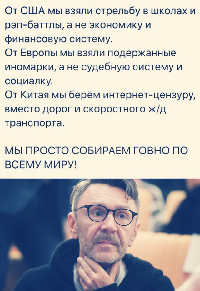 Из былого... Тот ещё персонаж, но сказано абсолютно верно: <iframe width="560" height="315" src="https://www.youtube.com/embed/9cYLQihlt_I" frameborder="0" allow="accelerometer; autoplay; encrypted-media; gyroscope; picture-in-picture" allowfullscreen></iframe> PS: Интересно, как долго продавшие за 6, 66 сребренников свои души погоны будут продолжать поддерживать новорасеянскую мифологию про 'наведение порядка на Кавказе 1999-2009 гг.'... Боже, какая ахинея... -------------------- I'm a monster.