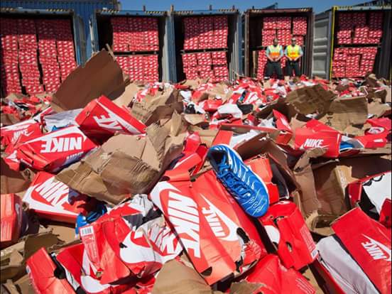 В Гамбурге вчера уничтожали конфискованные поддельные кроссовки Найк. А могли бы беженцам раздать. Звери.