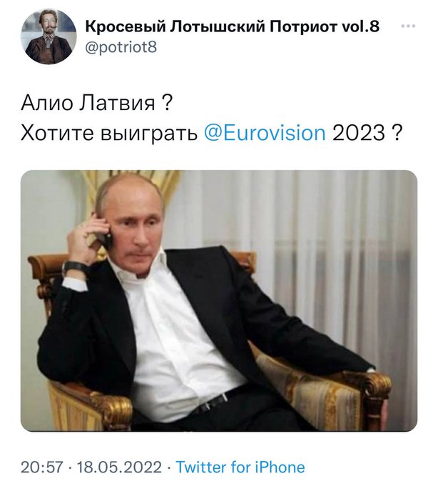 Если, например, выехать в Россию к родственникам, то можно не въехать обратно. А можешь раскрыть тему по подробнее? Откуда инфа? Были ли уже такие случаи? А то у меня спор возник на другом ресурсе, та один чел утверждает "да не может такого быть, не имеют права"... Как ты сам понимаешь, Бюро по защите Конституции и Служба Госбезопасности мне сканы документов домой не приносят. Просто на уровне дружеских предупреждений знающих людей, что, мол, не надо негражданам сейчас выезжать в Россию. А вообще в обществе истерика, кругом концерты, передачи и всякие прочие мероприятия в поддержку Украины, абсолютно везде жовто-блакитные знамёна, даже на Сейме и Кабинете Министров. И так везде, уже непонятно, Латвия уже часть Украины, или ещё не совсем. Но если поинтересоваться, понимают ли латыши, что раз Россия решила разбираться с теми, кто ведёт себя открыто русофобски, силовыми методами, главный вопрос звучит просто: "Кто следующий?", то в основном от ответа уклоняются. Привет! Ждут чем СВО закончится. А пока лают погромче. Ишь - спонсоры терроризма. -------------------- Лучшее - враг хорошего.