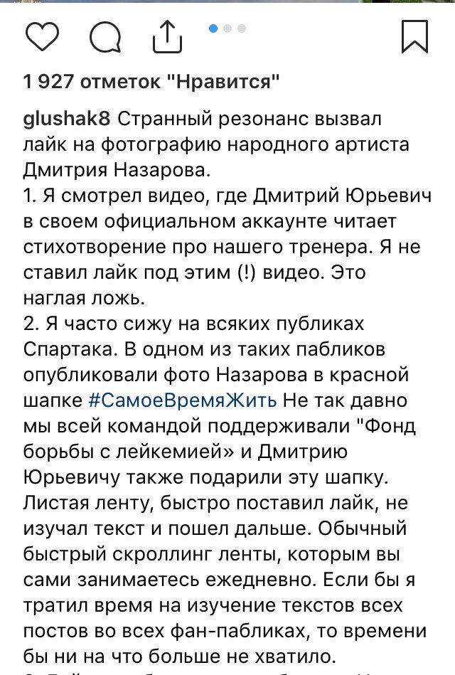 Max Allanazarov@KyKyPyKy22 Ещ и Глушак подставились. Подставились глупо. Настолько глупо подставиться нужно было постараться. Скорее, это были лайки на автомате. Не верю, что оба могли такое исполнить посмотрев ролик. Каррера уже в курсе. В Тарасовке утром будет жарко. Хорошо водонапорную башню не снесли. Можно считать, что Каррера уже уволен. С ромашкой он точно не справится. Глушаков не просто так лайкнул-он что то знает... А потом удалил... |