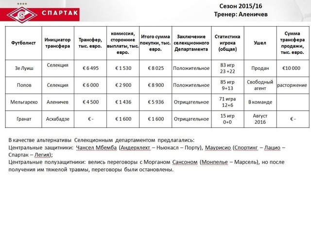Опять будет смотреть Мелкадзе, ломовицкого, тимофеева... Ладно Руи их не видел но мы то хорошо понимаем , что это не усиление команды. Или к нам волшебник из Изумрудного города приехал? Нечего на них и время тратить. Оставить в запасе Мирзова, бакаева а остальные в шею. Хотя по мне Тимофеев уж точно не хуже Умярова. -------------------- Красно-белый. Из крови и костей.
