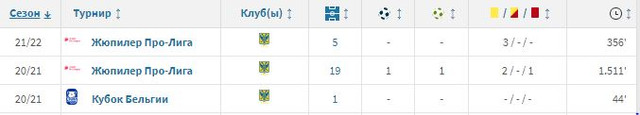 Если он такой хреновый, как умудрился наиграть столько времени в Бельгии, чемпионате не слабее нашего точно.. Как-то однобоко приподносят инфу.. Подозрительно. Не понимаю, о чем ты говоришь? Все его матчи на высшем уровне в Бельгии ограничиваются 25 матчами... ![]() до того 5 лет провел в Васланд-Беверен во 2 бельгийской лиге... |