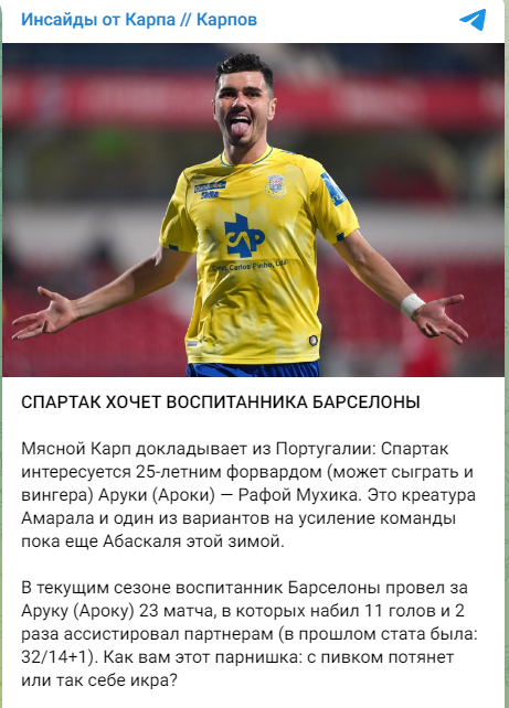 Как стало известно Metaratings.ru, нападающий «Твенте» и сборной Коста-Рики Манфред Угальде является одним из кандидатов на усиление состава «Спартака». Ранее об интересе к игроку сообщил журналист Иван Карпов. По нашим данным, сделка пока не близка к завершению, но «красно-белые» проявляют предметный интерес к форварду. Кроме того, его зарплата в «Спартаке» может составить около 2 млн евро, не считая бонусную часть. Футболист является креатурой нового спортивного директора москвичей Томаша Амарала. В 25 матчах во всех турнирах Угальде забил девять голов и сделал семь результативных передач. Его контракт с «Твенте» рассчитан до 30 июня 2027 года. Портал Transfermarkt оценивает рыночную стоимость 21-летнего игрока в 5 млн евро. https://metaratings.ru/news/ugalde-odin-iz-...sheniyu-326942/ -------------------- Спартак, ты никогда не будешь один!