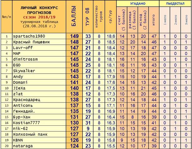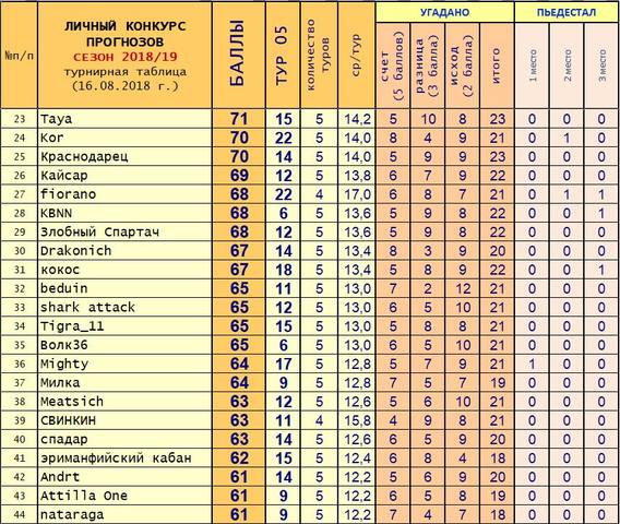 Дядь, кол-во туров и среднее за тур у Domani, dimitrossm. Del Piero и Dim неверное вроде... У кучи народа неверное - у пропустивших плюс. Заметил когда уже отпечатал. Исправлю все в следующих таблицах. -------------------- Лучшее - враг хорошего.