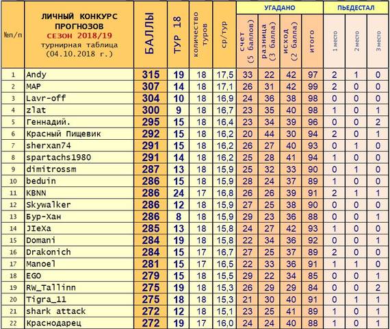 Стартовал 19 тур. Нет кучи прогнозов. Прошу дать на оставшиеся встречи. Не подводим других участников!